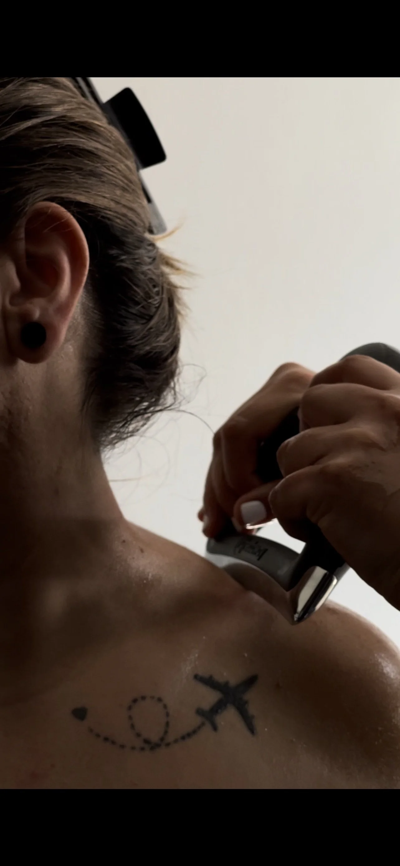 Combining scraping, heat and vibration this tool is great to maximize results. Scraping adhesions and scar tissue within the fascia can speed up healing and promote tissue regeneration.