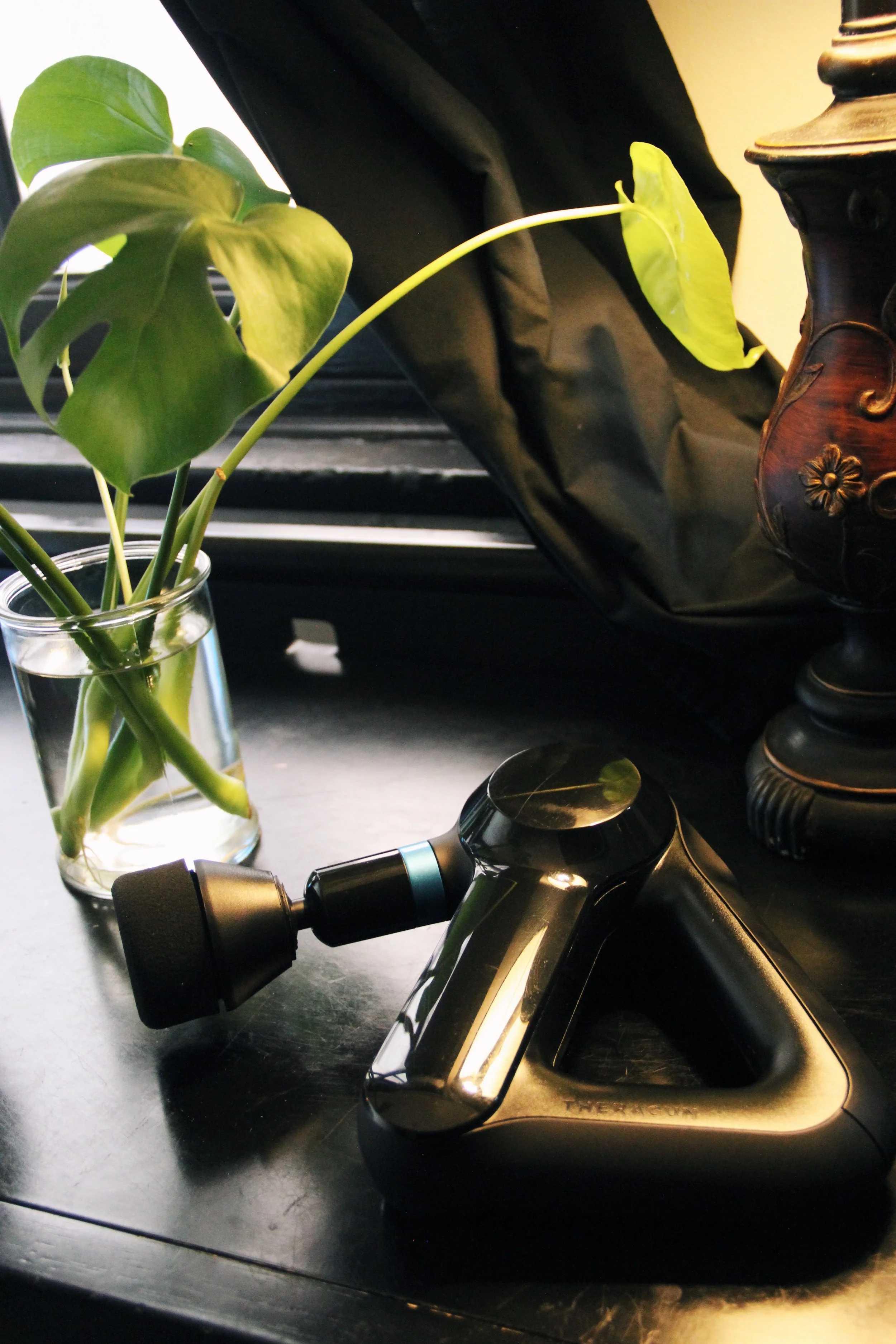 Theragun is great to warm up the tissue prior to the massage. This tool hits the muscle approximately 2000 times per minute, inviting blood flow to the area.